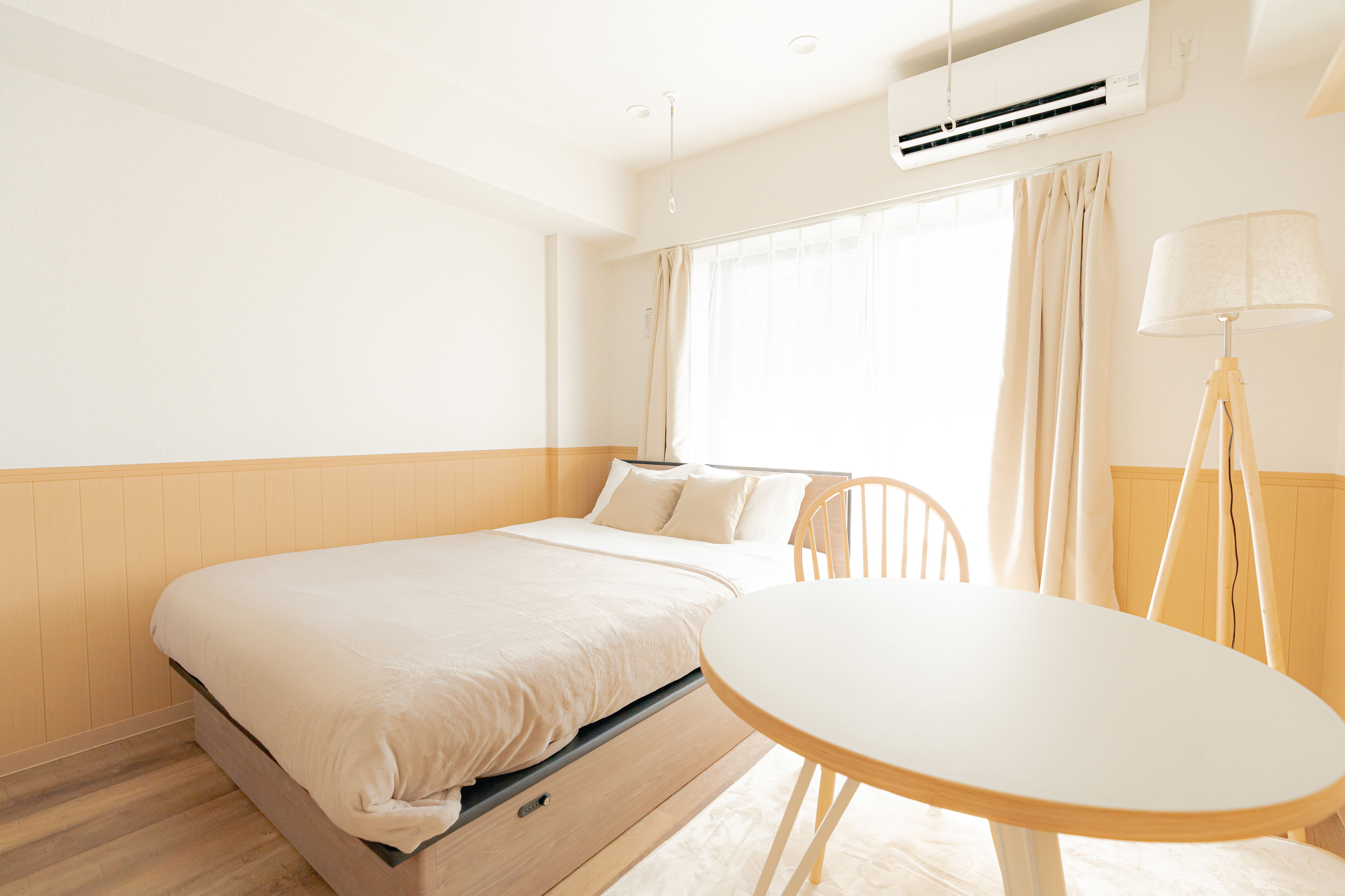 Fully furnished with a desk, fridge, TV, washing machine, etc. for a comfortable stay over the medium to long term!